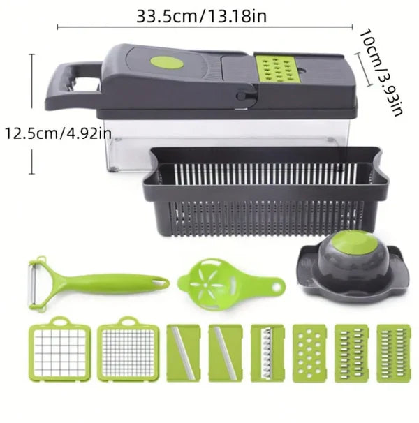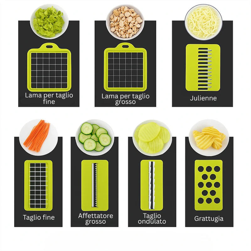 Il contenitore capiente e la struttura stabile permettono di lavorare diversi alimenti contemporaneamente, senza fatica.Cipolla, patate, carote, barbabietola o zucchine: tutto viene tagliato in modo uniforme e veloce.Dimentica il coltello: risparmia tempo, fatica e lacrime ogni volta che cucini.